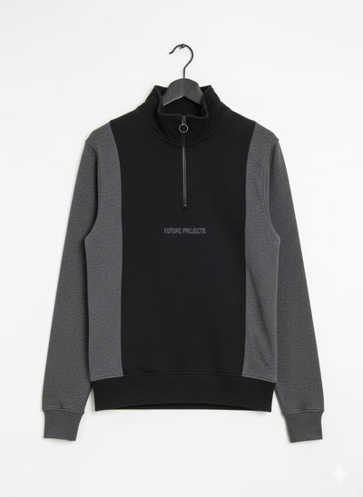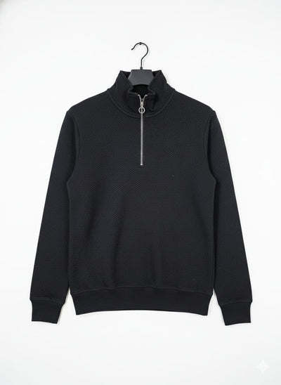 Primark Men's Black/Dark Grey Quilted Knit Pullover Sweatshirt - Quarter-Zip
