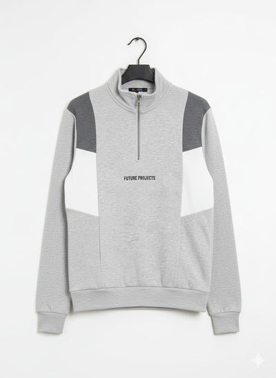 Primark white/grey Quilted Knit Pullover Sweatshirt - Quarter-Zip